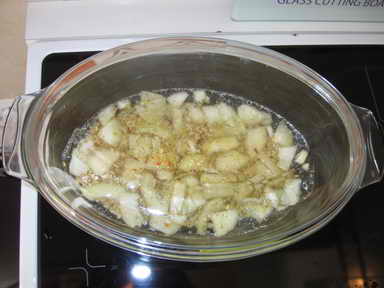 Može se peći i u otvorenoj posudi ali smatram da bude lepše kad se krčka duže u ovakvoj posudi. Staviti u zagrejanu rernu na 180 stepeni.